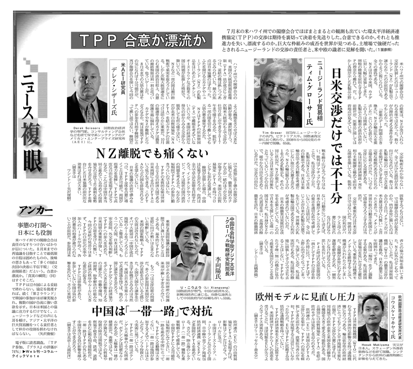 Nikkei interviews "four global experts" after the July Ministerial on TPP with Hosuk Lee-Makiyama on Europe's response.