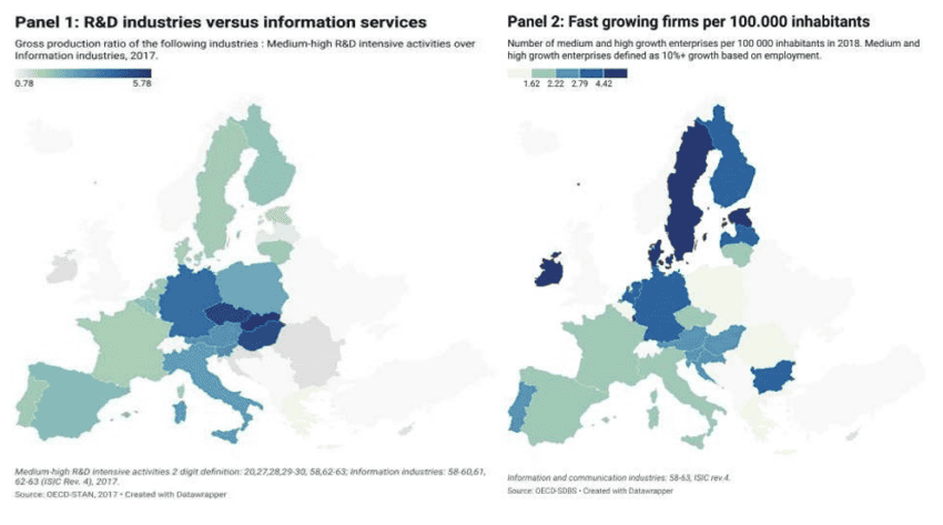 - The higher up you go on the EU map, the stronger the digital economic performance.
