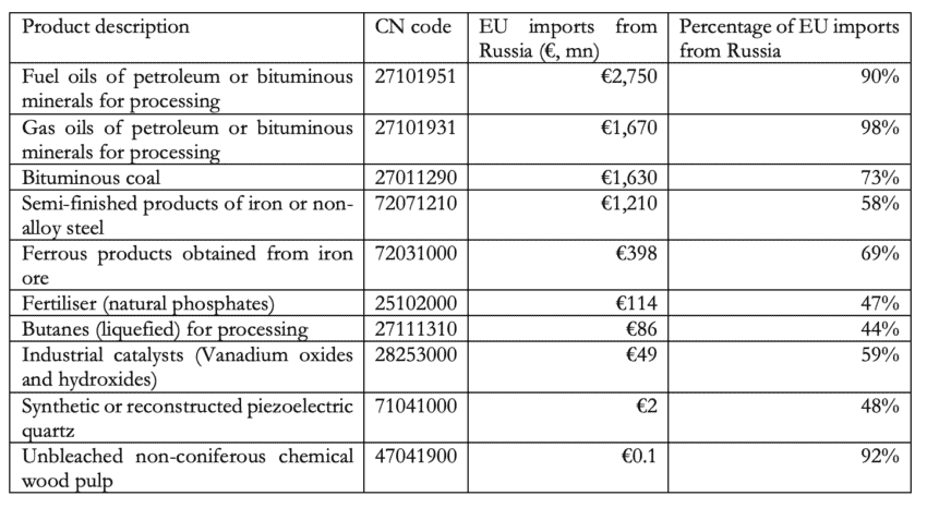 Table 1: EU import dependency on Russia’s exports (2020)