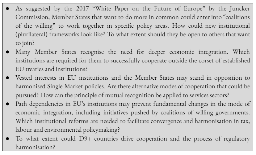 With the benefit of hindsight, the EU institutions may not be in the best position to lead in the process of completing the Single Market. Economic integration towards a “real” Single Market requires a political mindset change at the EU and Member State level. It also requires new political leadership among Member State governments. The mindset change may involve disengagement from the Franco-German-centric modes of economic integration, which in the past failed to promote common rules for all EU Member States.