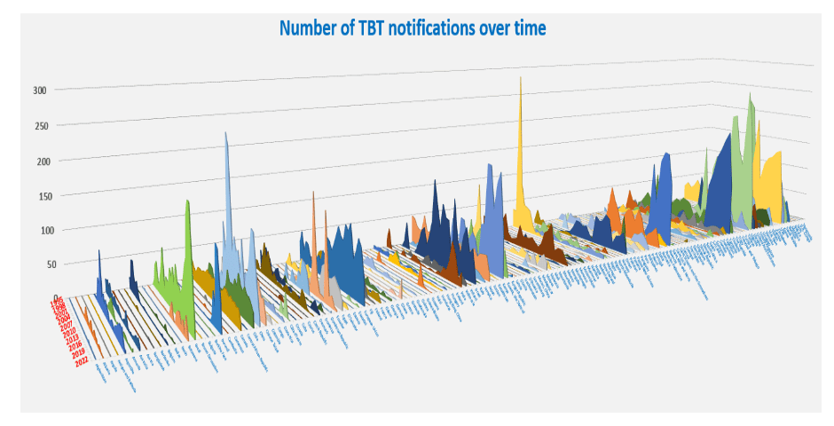 Figure 1. Number of new TBT notifications by WTO members, over time (1995-2022)