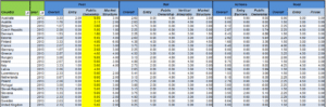A simple snapshot of some OECD numbers is telling. The picture below gives a screenshot of the OECD’s Product Market Database that records the level of non-digital regulatory restrictiveness in network services. The message from these numbers is quite interesting. For instance, although the market for postal service is entirely free for new firms to enter, which gives the impression that competition is optimal, the yellow column indicates that public ownership restrictions are still rampant.
