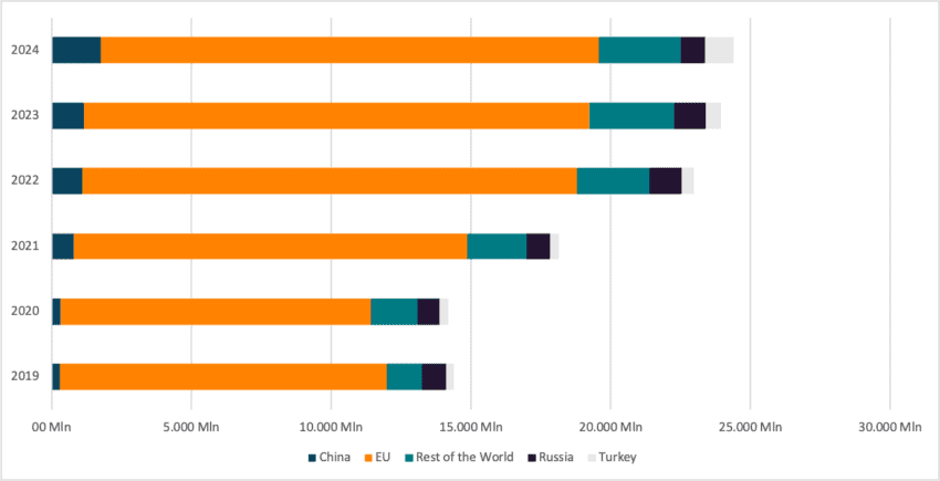 True, it is evident that the EU is Serbia’s main trading partner. In 2023, the EU accounted for some 60% of Serbia’s total trade in goods, with EU Foreign Direct Investment reaching 1.39 billion EUR in 2022. It is also evident that trade between EU countries and Serbia steadily increased over the past five-year period.