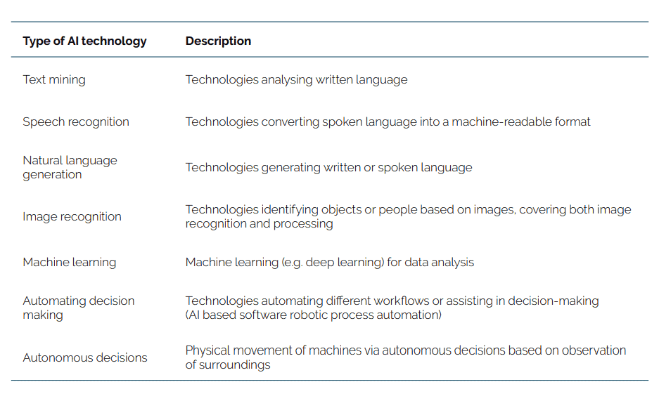 Table A1: Types of AI technologies as measured by Eurostat.