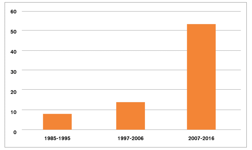 Figure 2: Number of discriminatory measures currently in force in China, 1985-2016