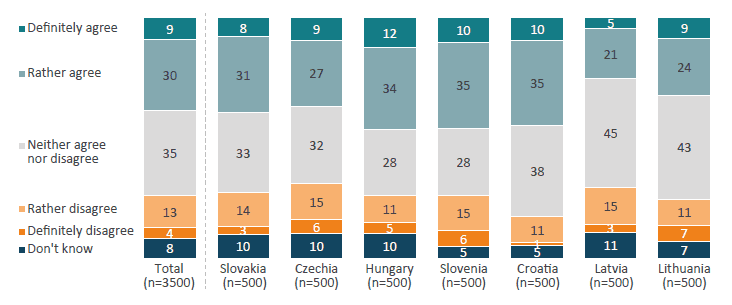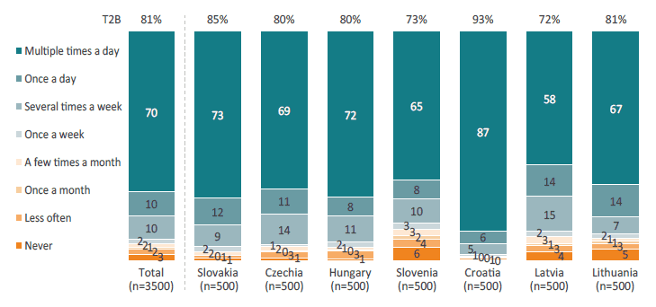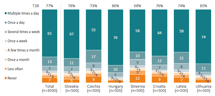 The study is a quantitative online survey (computer-assisted self-interviewing – CASI) conducted through the Ipsos online panel. Respondents completed a structured questionnaire with an average length of 15 minutes. The survey was fielded across seven CEE markets: Slovakia, Czechia, Hungary, Slovenia, Croatia, Latvia, and Lithuania. The selection of markets was guided by the aim to capture a balanced picture of consumer experiences across Central and Eastern Europe, with representation from Central, Southern, and Baltic sub-regions.