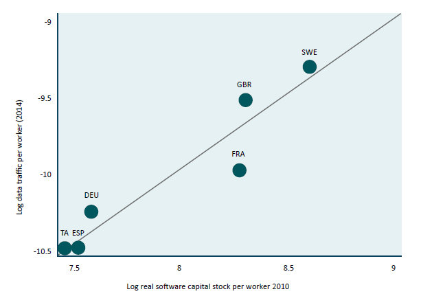 Chart 1: Real Software Stock per Worker (2010) and Data Traffic per Worker (2014)