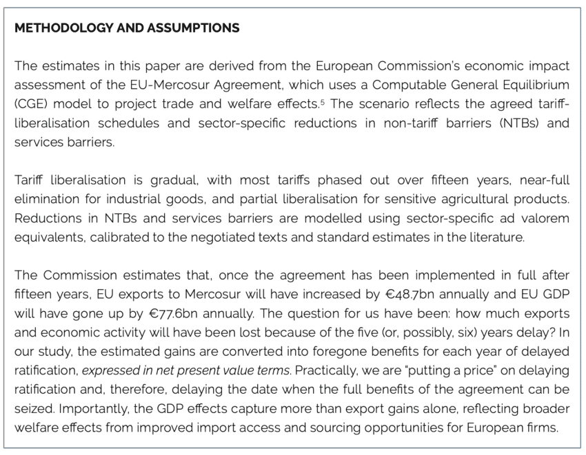 Table 1: Economic cost of delaying the EU-Mercosur Agreement (net present value)
