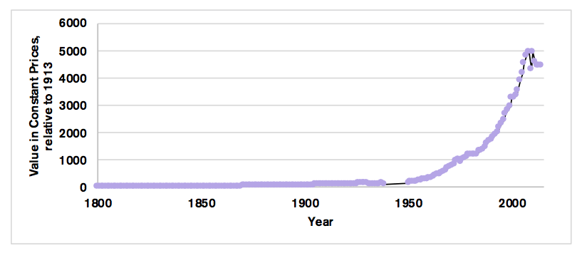 Diagram 1: Index över global export mellan 1800 och 2014