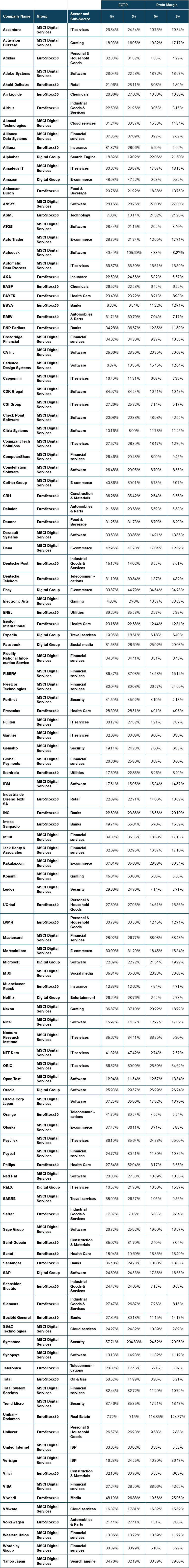 Note: own calculations based on annual reports and financial statements, supplemented by data collected by the Financial Times’ database. Companies include “Digital Group” and “MSCI Digital Services” companies. Data do not include loss-making companies.