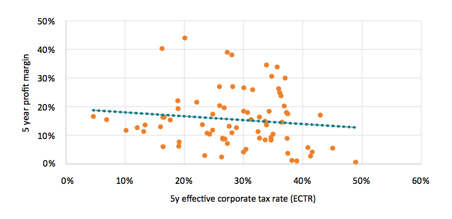 Figure 5: Correlation between profit margins and effective corporate tax rates, digital companies, 5y averages 2012-2016