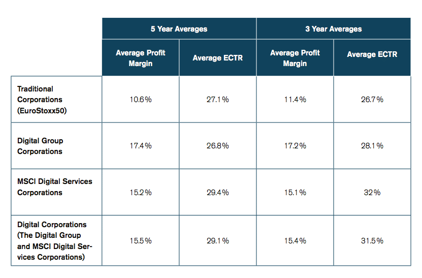 For instance, the above-mentioned Commission Communication selectively uses highly aggregated average data for corporate revenues (top 5 e-commerce retailers) and average corporate tax rates to highlight that companies with “traditional”, less or non-digital, business models face significantly higher tax rates than companies with “digital” business models. According to the references provided by the Commission, the numbers are taken from a ZEW (2016) study that had been commissioned by the European Commission’s DG TAXUD and PWC (2017), which refers to the work done by ZEW. It should be noted, however, that the numbers presented by the Commission for the effective corporate tax rates (ECTR) of digital companies are neither explicitly reported in ZEW (2016) nor depicted in PWC (2017). While the numbers presented may have been calculated on the basis of the ZEW study, it remains unclear how they arrived to their specific estimates on the ECTR. Most notably, real observed data do not correspond with these estimates and, importantly, the ZEW study (2016, p. 9) says that the numbers they have calculated are mere estimates based on a “hypothetical investment project” and a number of theoretical assumptions about pre-tax rates of the return of a hypothetical investment, real interest rates, and different depreciation rates for a limited number of asset classes.