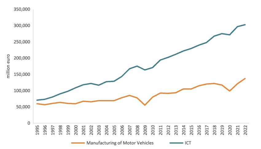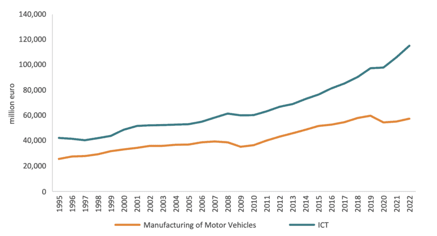 Note: Authors’ calculation based on OECD Input-Output Tables. Note: OECD Input-Output Tables did not include the aggregate ICT sector. The ICT sector was approximated using the following NACE sector: Information and Communication (J).