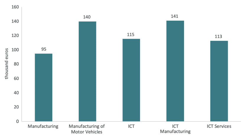 [1] Eurostat. Structural business statistics. Data for 2023. ICT sector included the following industrial categories: (C261) Manufacture of electronic components and boards; (C262) Manufacture of computers and peripheral equipment; (C263) Manufacture of communication equipment; (C264) Manufacture of consumer electronics; (C268) Manufacture of magnetic and optical media; (G465) Wholesale of information and communication equipment; (J582) Software publishing; (J611) Wired telecommunications activities; (J612) Wireless telecommunications activities; (J613) Satellite telecommunications activities; (J619) Other telecommunications activities; (J620) Computer programming, consultancy and related activities; (J631) Data processing, hosting and related activities; web portals; (S951) Repair of computers and communication equipment; (S952) Repair of personal and household goods;