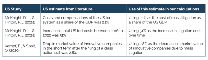 Erixon, F., Guinea, O., Pandya, D., Sharma, V., Sisto, E., du Roy, O., Zilli, R., & Lamprecht, P. (2025). The Impact of Increased Mass Litigation in Europe. ECIPE, Brussels, occ. paper 3/2025, p. 108.