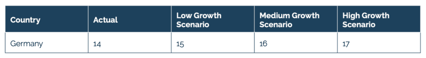 - High Growth Scenario: assumes that the economic impact of mass litigation growth in Germany will be equivalent to 30 percent of the economic effects observed in empirical studies in the US.