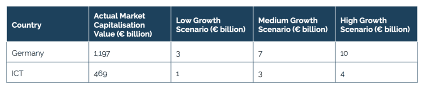 Table 4: Reduction in market capitalisation for the top 106 and 17 ICT German R&D investors – scenario-based analysis