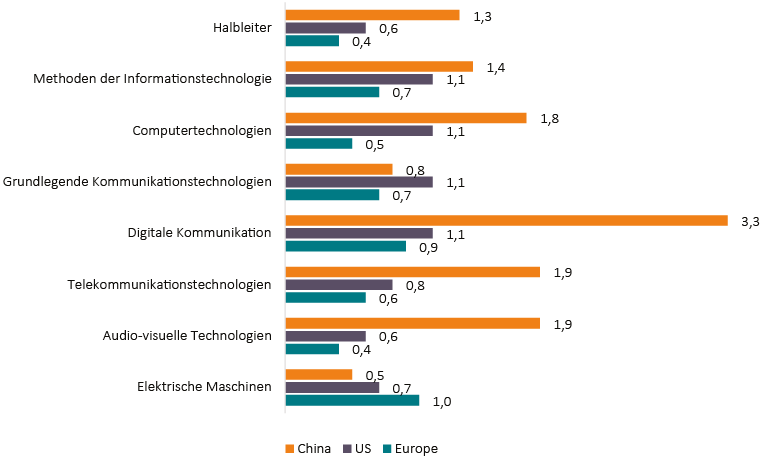 Mit einem Anteil von beinahe 25 % an der Wirtschaftsleistung der EU hat Deutschlands Wirtschaft insgesamt viel zu gewinnen oder zu verlieren, was Strategien zur Erreichung einer europäischen Technologiesouveränität angeht. Deutschland hat den höchsten Anteil an wissensbasierter Beschäftigung und wissensbasiertem Handel in der EU. Das spiegelt den hohen Anteil der verarbeitenden Industrien wider, die in der deutschen Wirtschaft unter den patentintensiven – also technologieintensiven – Industrien vorherrschend sind. Der Zugang zu Spitzentechnologien der Zukunft ist für die deutsche Wirtschaft von entscheidender Bedeutung, da sämtliche Industrien einen Prozess hin zu technologiebasieren Produkten und Dienstleistungen durchlaufen, zu denen auch zukünftige Anwendungen der „Industrie der Dinge“ (IoT) gehören.