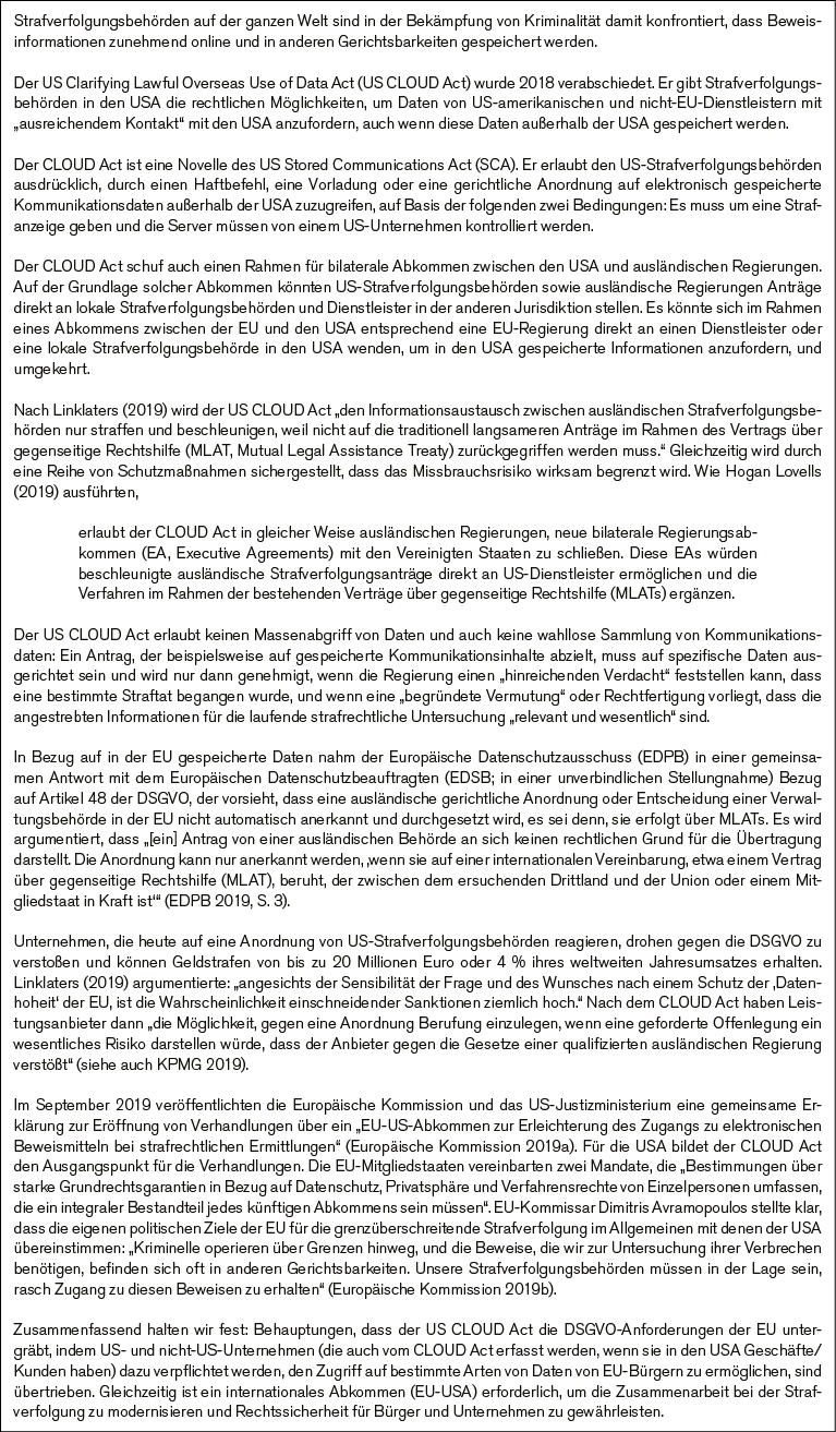 Box 2: US CLOUD Act, DSGVO und der zukünftige EU-US-Vertrag zum Austausch von elektronischen Beweisen