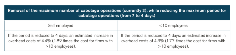 Table 1. Impact of changes in EU cabotage restrictions on SMEs