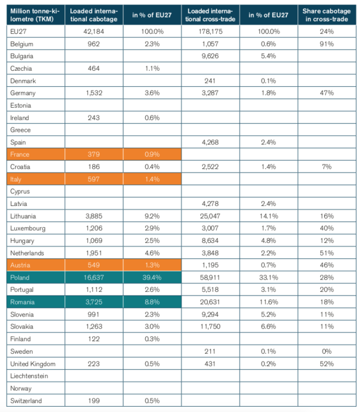 Table 2. Loaded freight cabotage vs. loaded cross-border trade, in 2018