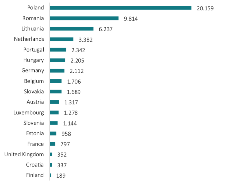 Figure 4. Number of persons employed potentially affected by EU cabotage regulations, total road freight transport services, 2017