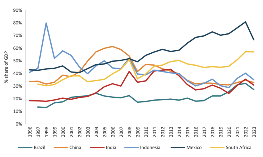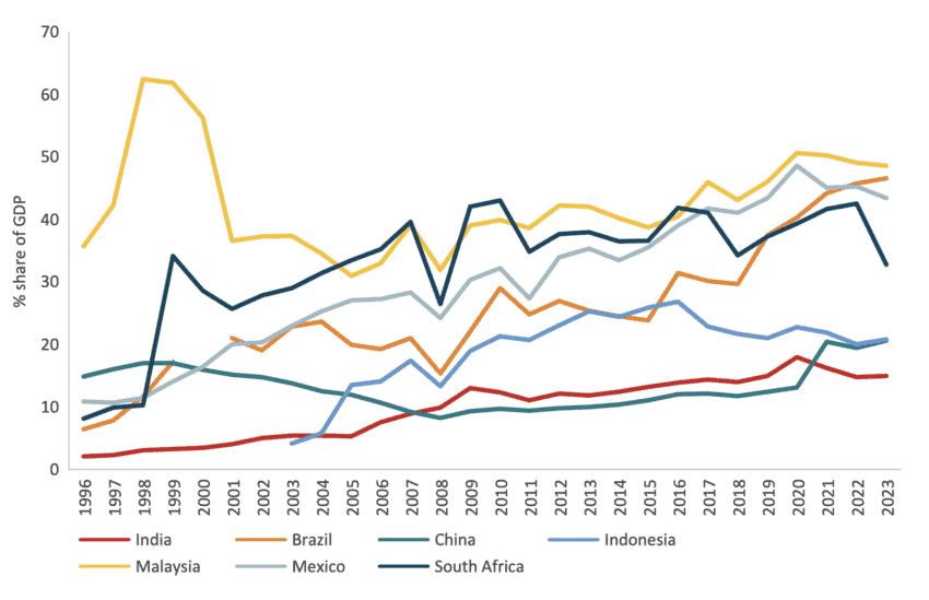 Figure 1: Trade as a percentage of GDP (1996-2023)