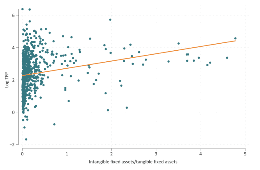 In today’s knowledge-driven economy, intangible capital has become a critical driver of productivity growth. Investments in intangible capital, such as industrial design, Artificial Intelligence (AI), datasets, organisational structures, or employee training programs, are essential vehicles to diffuse new technologies across the economy[2] [3].