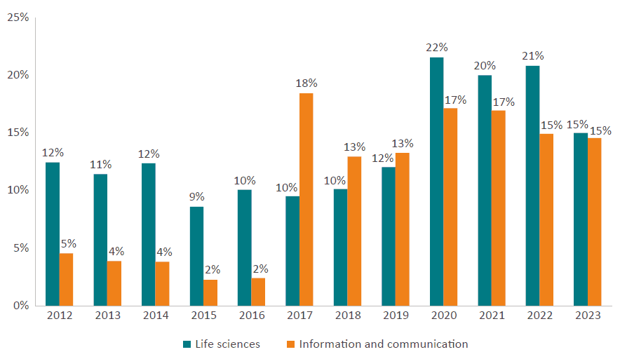 These developments are not just legal technicalities. They strike at the heart of Ireland’s economic model. As this study later shows, many recent collective actions in the EU and abroad have targeted companies in the Information and Communication Technology (ICT) and life sciences sectors, two of Ireland’s most strategically important industries. Both sectors have attracted high levels of foreign direct investment (FDI), particularly from the United States. If the use of TPLF in the EU continues to grow unchecked, Irish-based multinationals may find themselves entangled in a growing number of mass litigation cases arriving from the continent.