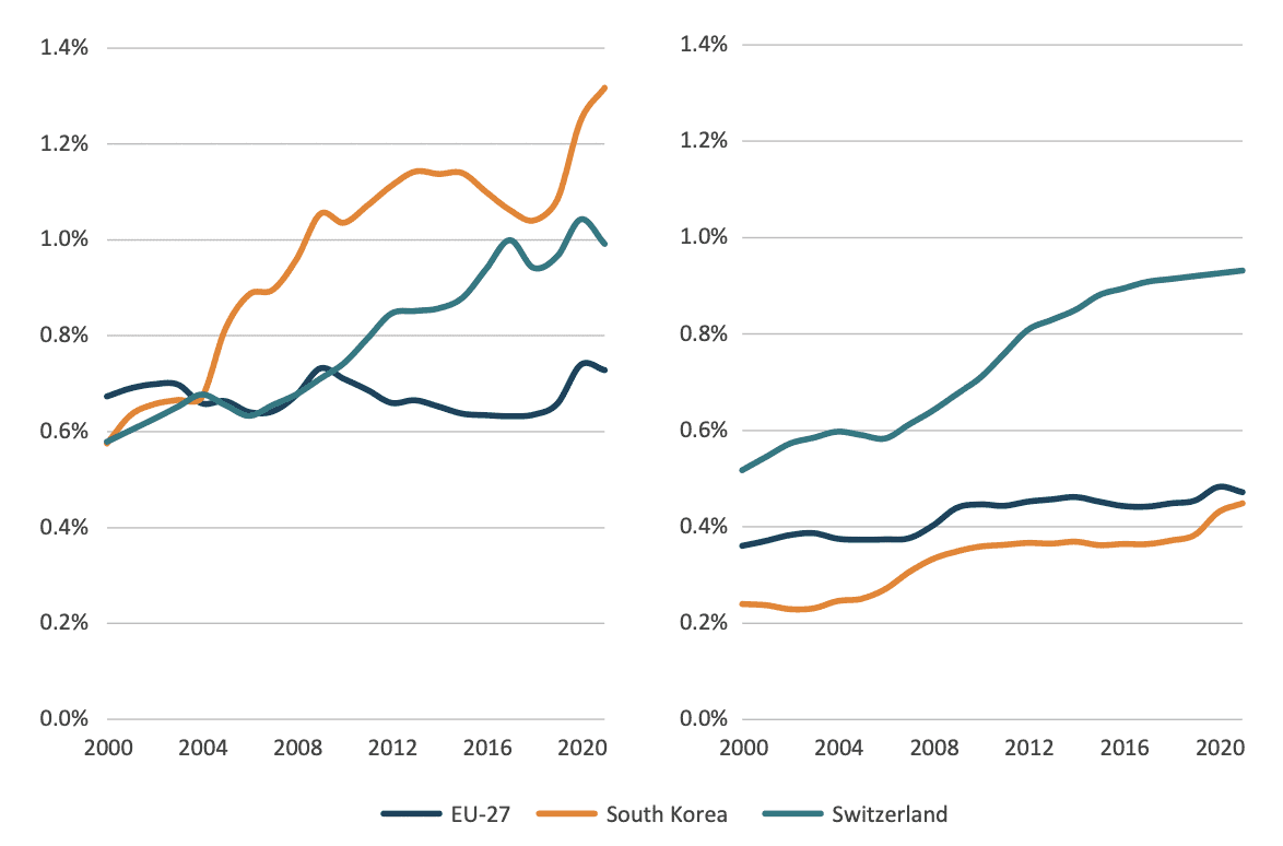 - The South Korean model: South Korea has successfully used industrial policy to promote R&D in high-tech sectors. Its G7 Programme in the 1990s provided targeted research subsidies to encourage private firms to invest in cutting-edge technologies. The country also employs highly differentiated R&D tax incentives, favouring small firms that are more responsive to innovation policies.