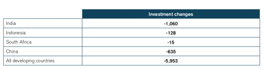 In total, the aggregated loss in investments (both domestic and foreign direct investments) for the developing countries would be US$13.7 billion. The decline in investments ranges between US$15 million for South Africa and up to US$1 billion for India. To put these figures into context, the entire federal budget for public cultural programmes in India is US$410 million (2,843 Rs crore),[1] and the investment losses from the ‘ET tariff’ would be twice the impact of removing all federal funding for culture in India.
