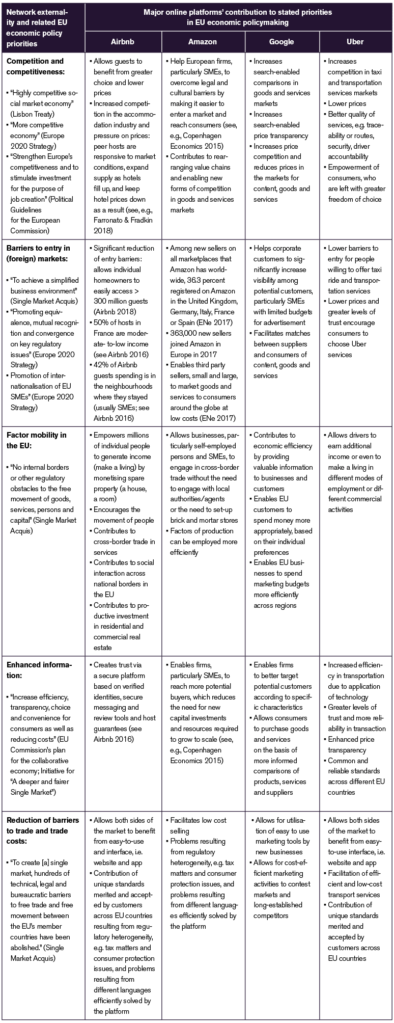 More detailed examples of how major online platforms facilitate “more perfect competition” and at the same time contribute to the EU’s stated political priorities, particularly the objective to promote intra-EU trade and economic integration, are given in Table 1.