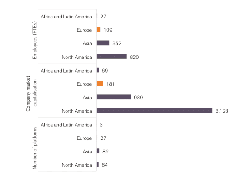 Figure 3. Platform companies by region, absolute numbers