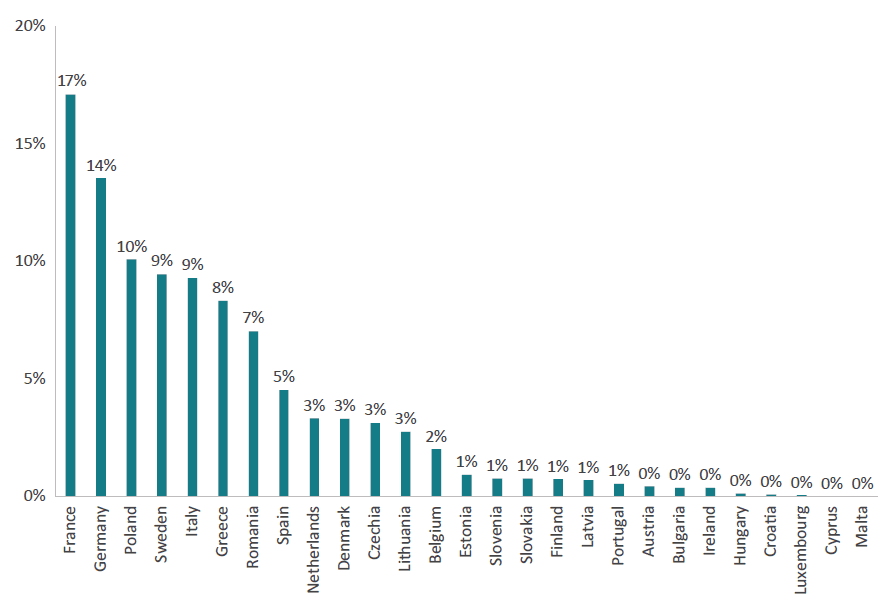 Figure 3: EU defence procurement by member state (TED data, 2023)