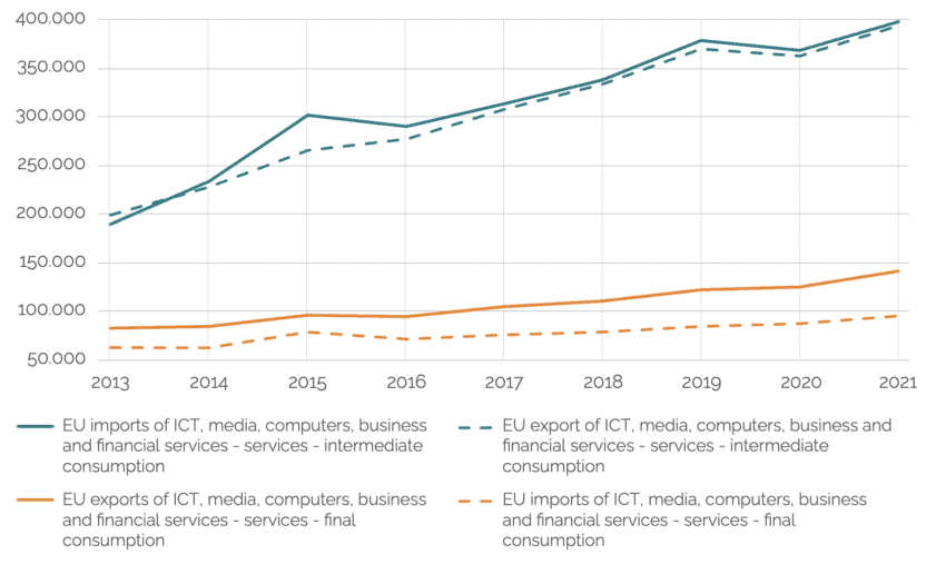 Figure 2: EU trade in digital and digitally enabled services for intermediate consumption and final consumption, in million EUR