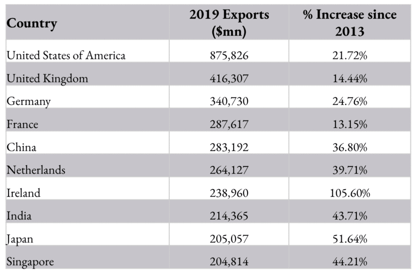 A bigger issue is that services data figures are beset by measurement problems, as unlike goods there is no clear point at which they leave one territory for another. This can be seen in trade relations between the world’s two largest services exporters. According to UK figures the country had a £35 billion services trade surplus with the US in 2019. On US figures the UK had a $16 billion deficit. The same problem affects UK-EU trade data, except that while US figures are lower than those of the UK, those of the EU are higher.