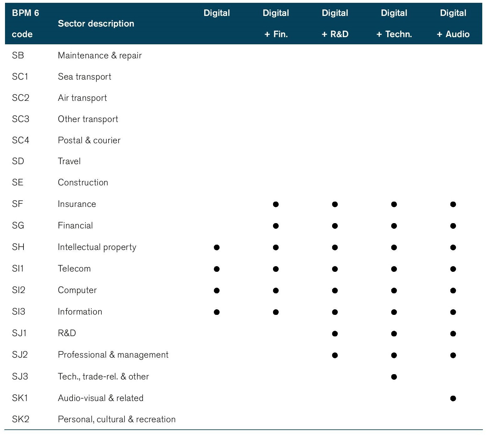 Table 1: Software-intensive sectors using the WTO-UNCTAD-ITC classification