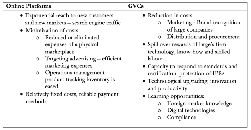 Table 2: Advantages to SMEs of exporting through online Platforms or Global Value Chains