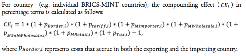 The compounding effect (CE) of import tariffs is reinforced by other measures, such as additional administrative costs due to inefficient border compliance procedures and documentation requirements.