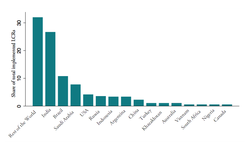 Figure 1.1: Share of globally implemented LCRs by country (%)