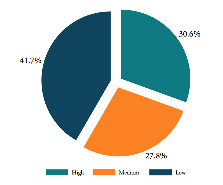 Figure 2.5 provides a summary of the LCRs by level of impact that apply across the BRICS countries. The level of impact ranges from low, medium to high and the assessment of the impact for each LCR measure has been done in close corporation with stakeholders from the automotive industry. Figure 2.5 shows that a slight majority of the LCRs have a low impact. The other two categories of medium and high impact are almost equally divided, with 30.6 percent of the measures having a high impact whereas almost 28 percent having a medium impact on trade.