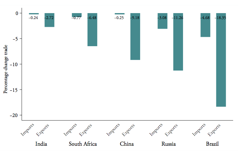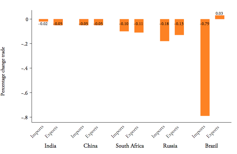 Source: ECIPE calculations, based on ECIPE LCR BRICS database; WITS/UNCTAD TRAINS