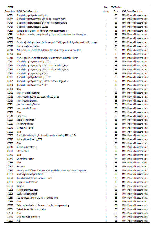 Annex II: Concordance Table between HS2002 6-digit and GTAP Product Group and Heavy Vehicles Selection