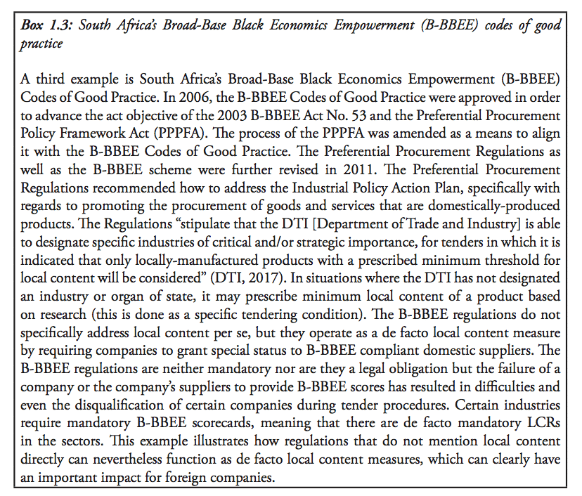 Ramdoo, Isabelle (2015): Unpacking Local content Requirements in the Extractive Sector: What implications for the Global Trade and Investment Frameworks? Available at: http://e15initiative.org/wp-content/uploads/2015/09/E15-Extractive-Industries-Ramdoo-FINAL.pdf (retrieved on 3 July 2017).