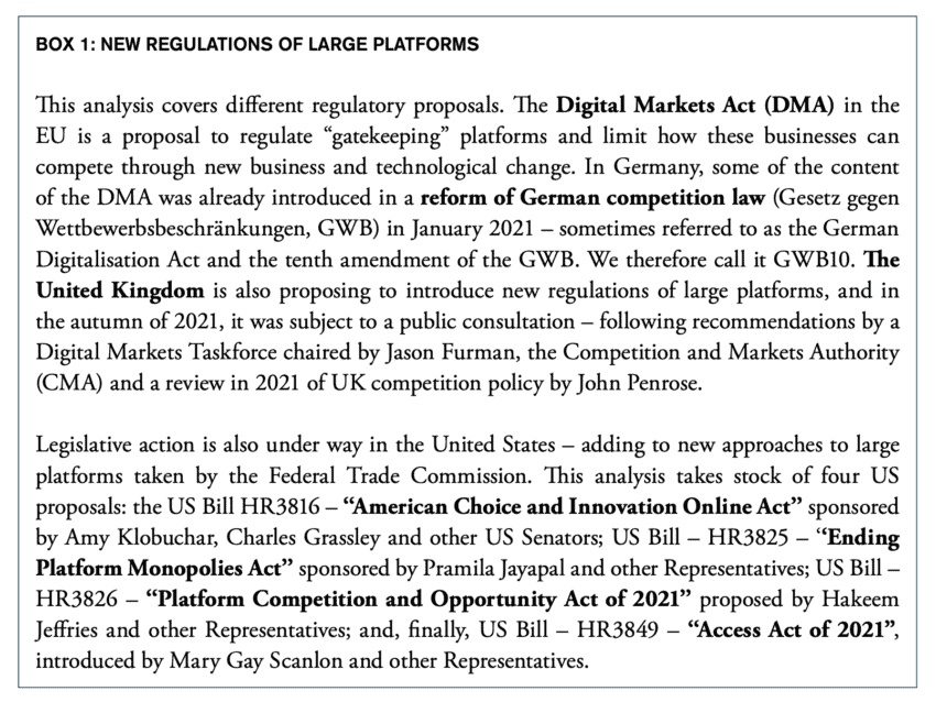 Cabral, L., Haucap, J., Parker, G., Petropoulos, G., Valletti, T. and Van Alstyne, M. (2021). The EU Digital Markets Act – A Report from a Panel of Economic Experts.
