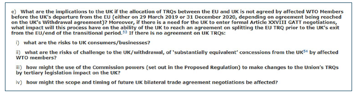 The UK’s first international trade negotiation since joining the EU in 1973 had commenced. For the avoidance of doubt the letter, reproduced in Annex 1, also stated that: “The modification of these TRQ access arrangements cannot credibly be achieved through a technical rectification. None of these arrangements should be modified without our agreement.”