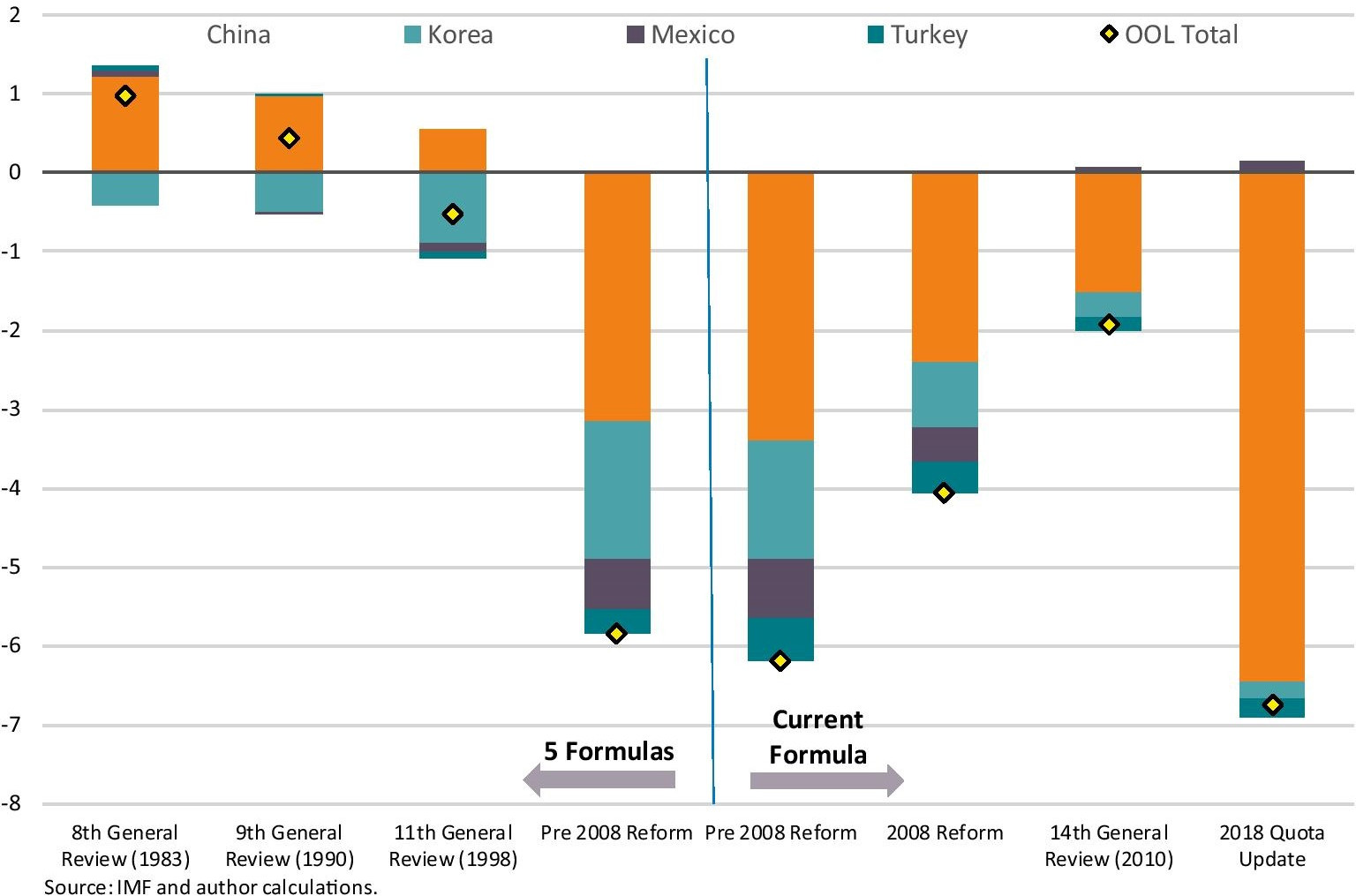 [5] China’s quota share (6.4 percent) is lower than suggested by the formula (12.9 percent) and its share in global GDP (15.0 percent).